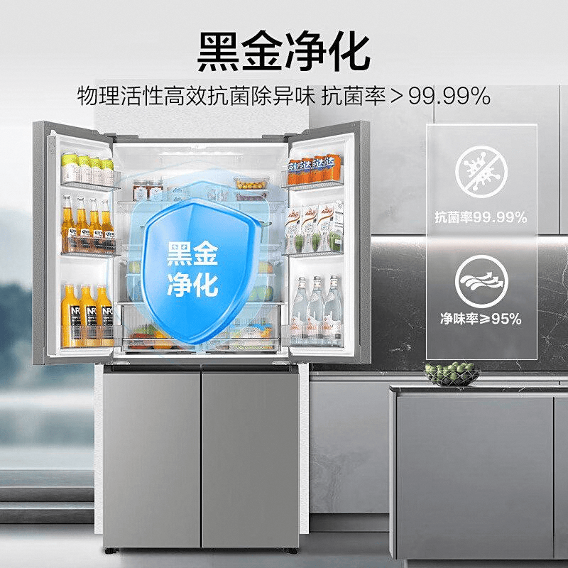 高效净味,健康保鲜:这款冰箱搭载高级净味技术,有效抑制细菌生长并去除异味,确保食材在健康环境中储存。99.99%的抗菌效果以及90%的去味能力,为家人的饮食提供了更安全的保障,每次开启都能感受到清新的气息。此外,智能变温系统使得不同食物在最适宜的温湿度下保存,彻底领略健康生活的美好。